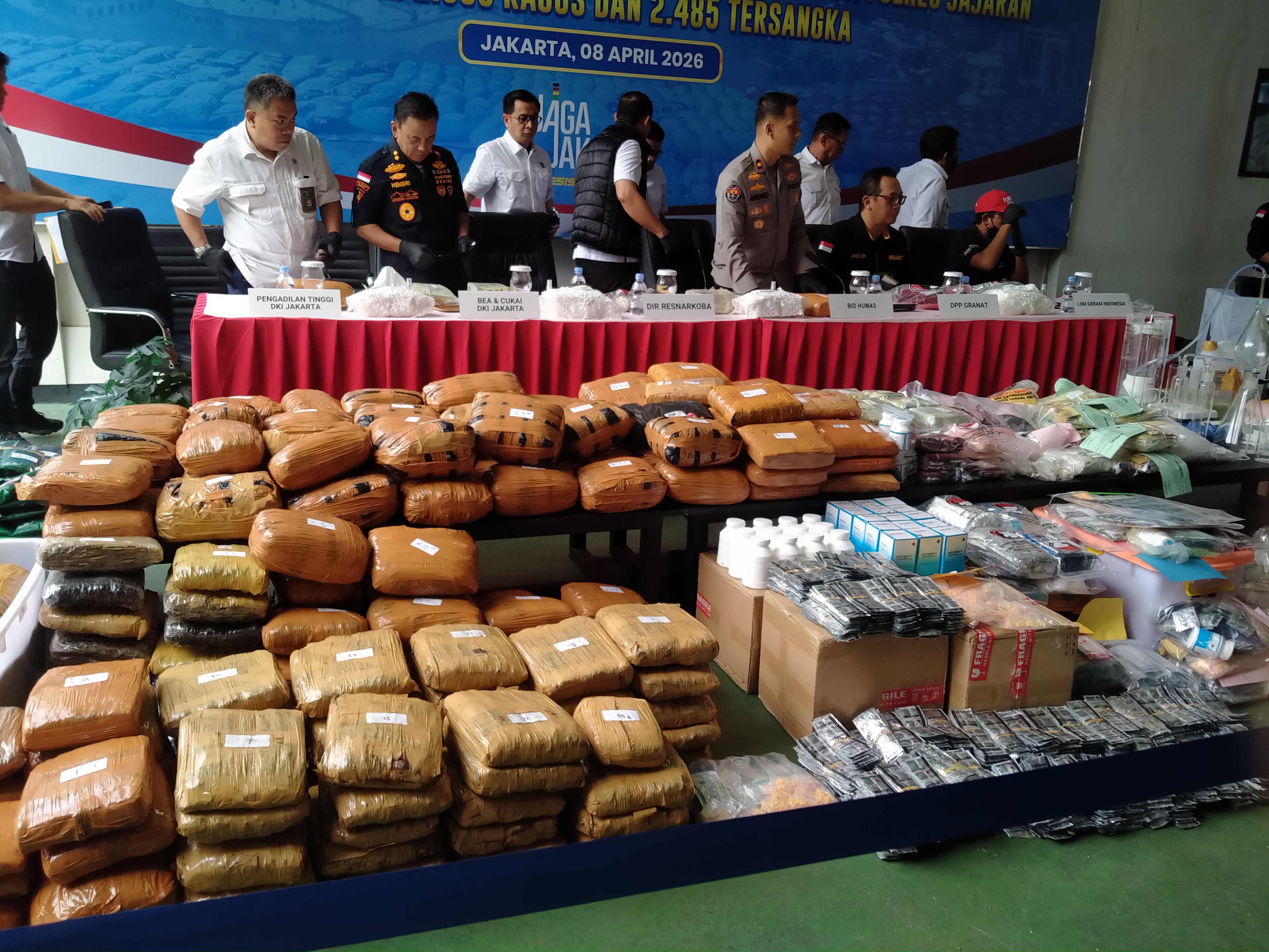 Pengungkapan tersebut disampaikan dalam konferensi pers yang dirangkaikan dengan pemusnahan barang bukti narkoba di halaman Gedung Ditresnarkoba Polda Metro Jaya, Rabu (8/4/2026).