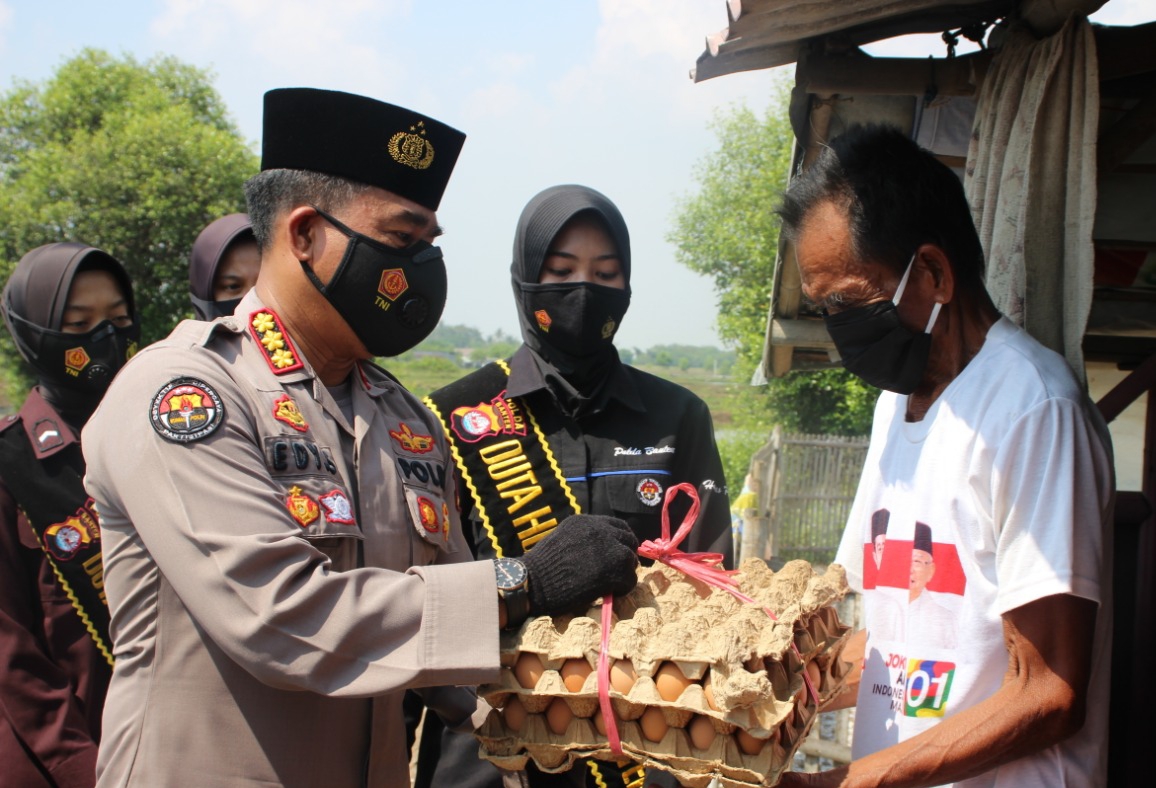 Penyaluran sembako yang dilaksanakan pada Jumat (11/6) dipimpin langsung oleh Dirbinmas Polda Banten Kombes Pol Riki Yanuarfi dan Kabid Humas Polda Banten Kombes Pol Edy Sumardi.” Kali ini kunjungan tim warung berkah bagi masyarakat yang kurang mampu terpusat di Kp Domas, Kecamatan Pontang Kabupaten Serang,” terang Dirbinmas Polda Banten Kombes Pol Riki Yanuarfi.