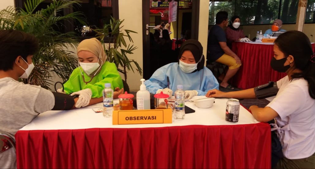 Vaksinasi Merdeka yang di gelar di halaman Mako Polsek Batu Ceper, Polres Metro Tangerang Kota, Kamis (26/8) dipantau langsung oleh Kapolsek AKP David Purnama Purba, sekira mulai Pukul 09.00.WIB.