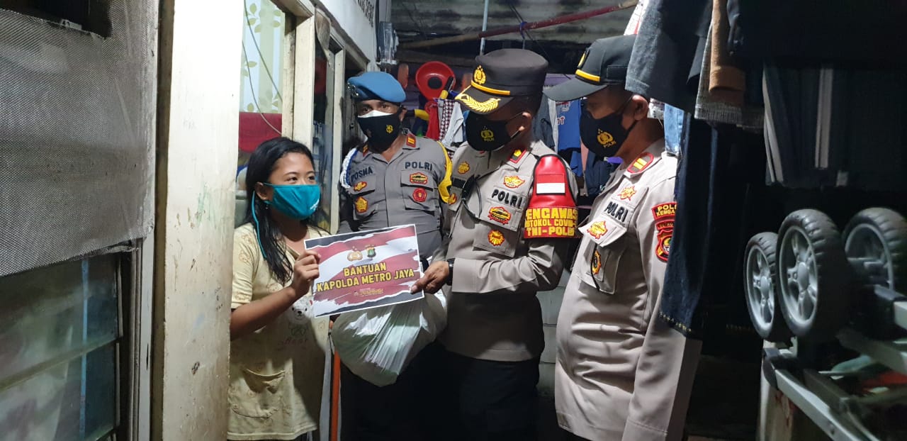 JAKARTA-JOURNALREPORTASE- Kapolsek Kembangan Kompol H Khoiri menyalurkan paket sembako kepada 100 warga di slum area yang terdampak wabah Covid-19 di Area Parkir RT 01/09 Kembangan Utara Jakarta Barat, Jumat (9/7/21).