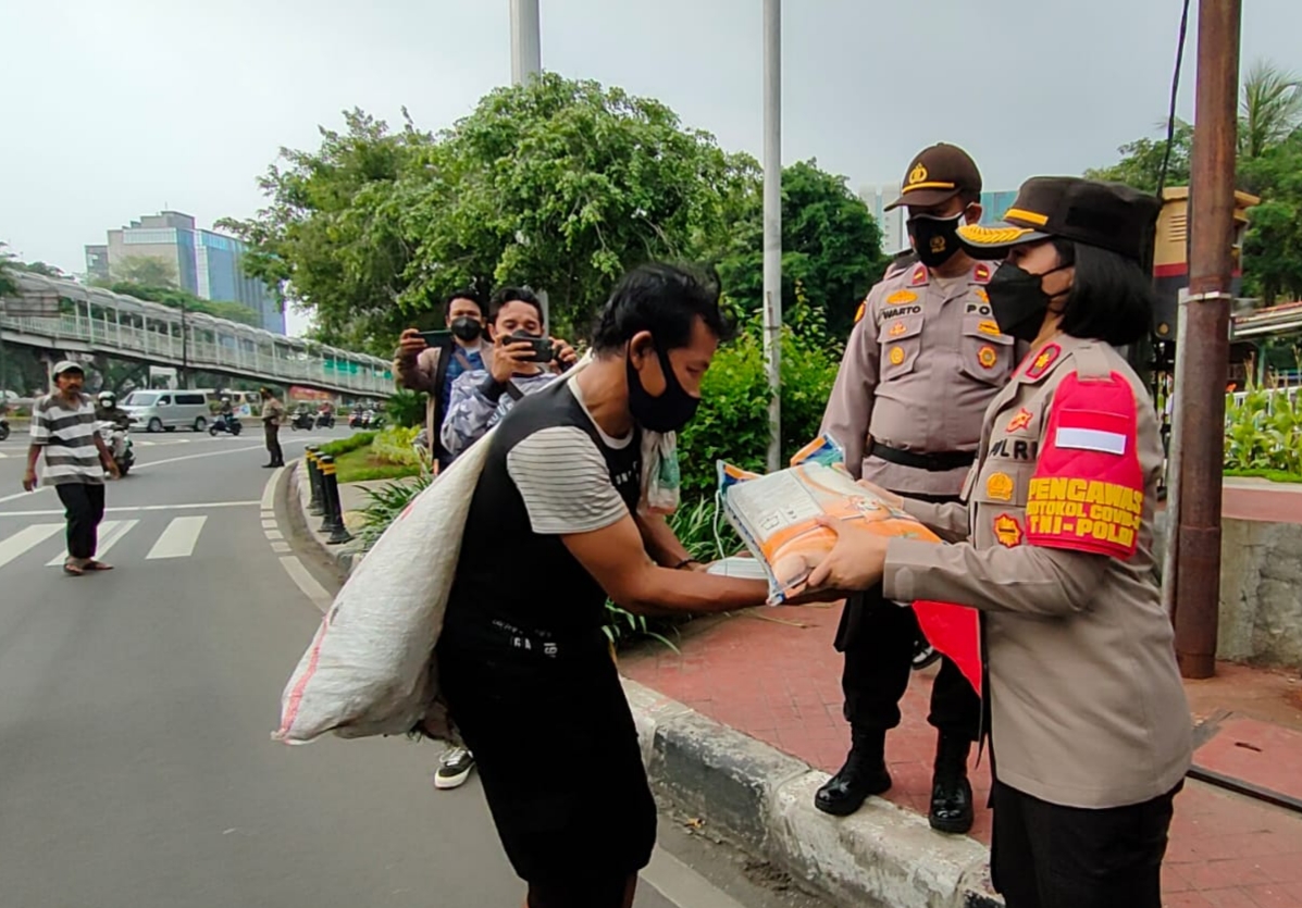 Pembagian sembako berupa beras ini dilaksanakan di depan tugu reformasi 12 mei jalan S Parman Tomang Grogol Petamburan Jakarta Barat. “Sebanyak 200 bungkus sembako beras kami bagikan kepada warga slum area dan ojek online (ojol) yang terdampak covid19 yang melintas,” ujar Kapolsek Tanjung Duren Kompol Rosana Albertina Labobar atau akrab di sapa Ocha.
