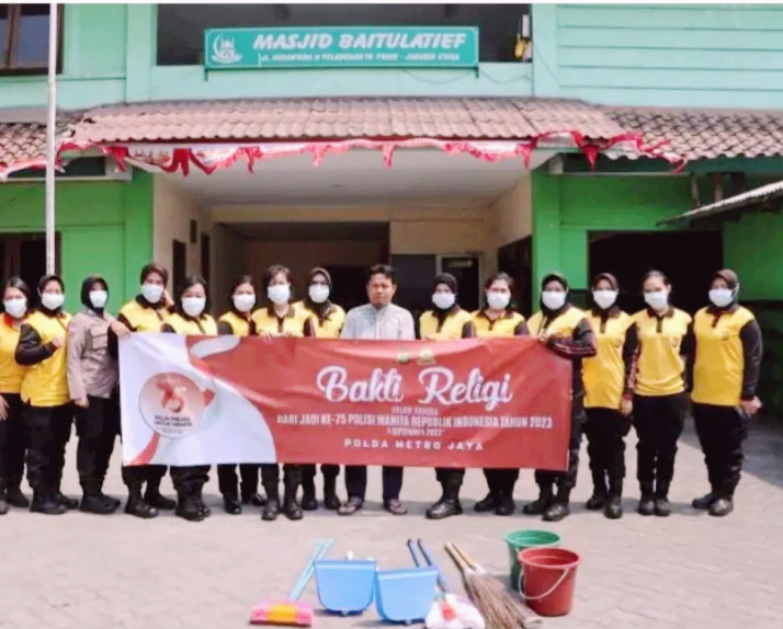 Kegiatan religi yang gelar, di Masjid Baitullatief Jalan Nusantara II Pelabuhan Tanjung Priok Jakarta Utara, (16/8/2023) dalam rangka memperingati Hut Polwan  (Polisi Wanita) yang jatuh pada hari Jumat tanggal 1 September 2023 mendatang. Pelaksanaan kegiatan religi dipimpin IPTU Abdi Nurhasanah,  meliputi bersih lingkungan  masjid.