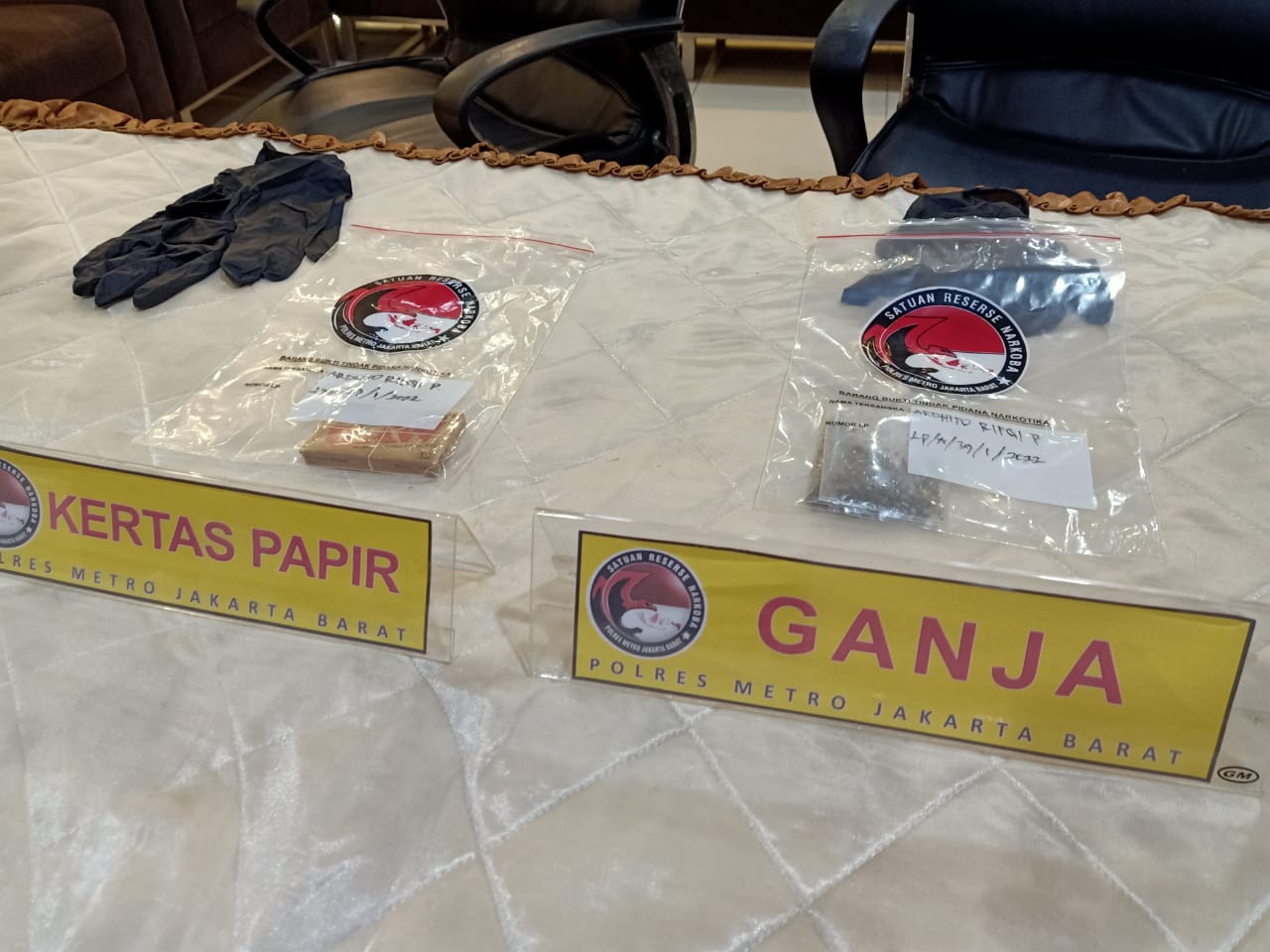 Penangkapan AP (26) terkait kasus penyalahgunaan narkoba jenis ganja. Dari penggeledahan, anggota dari satuan narkoba Polres Metro Jakarta Barat yang dipimpin oleh Kasat Resnarkoba Akbp Danang Setiyo dan Kanit 3 Resnarkoba Akp Laksamana berhasil mengamankan barang bukti narkotika