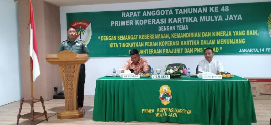 Dengan mengusung tema “Dengan Semangat kebersamaan, kemandirian Dan Kinerja yang baik, Kita Tingkatkan Peran Koperasi Kartika dalam Menunjang kesejahteraan Prajurit, PNS dan Keluarga.” . RAT dibuka oleh Kapuskop Kartika Jayakarta Kolonel Inf Suwanto.