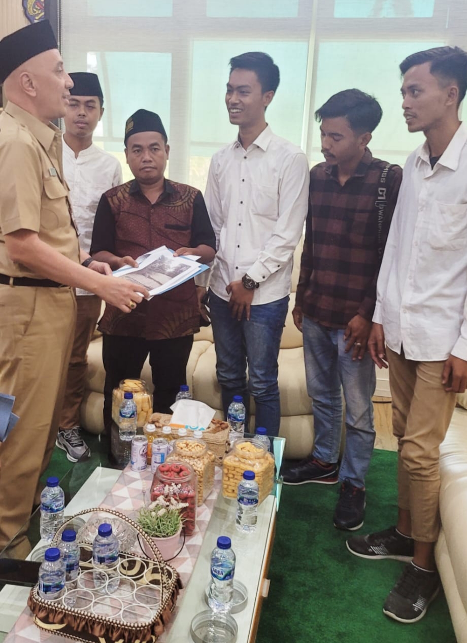 Antusiasme ditunjukan PJ Bupati Bangkalan Arief M. Edie saat menerima kehadiran dari Presiden Mahasiswa STIT Al-Ibrohimy Bangkalan, Rossim pada Selasa (26/9/2023).