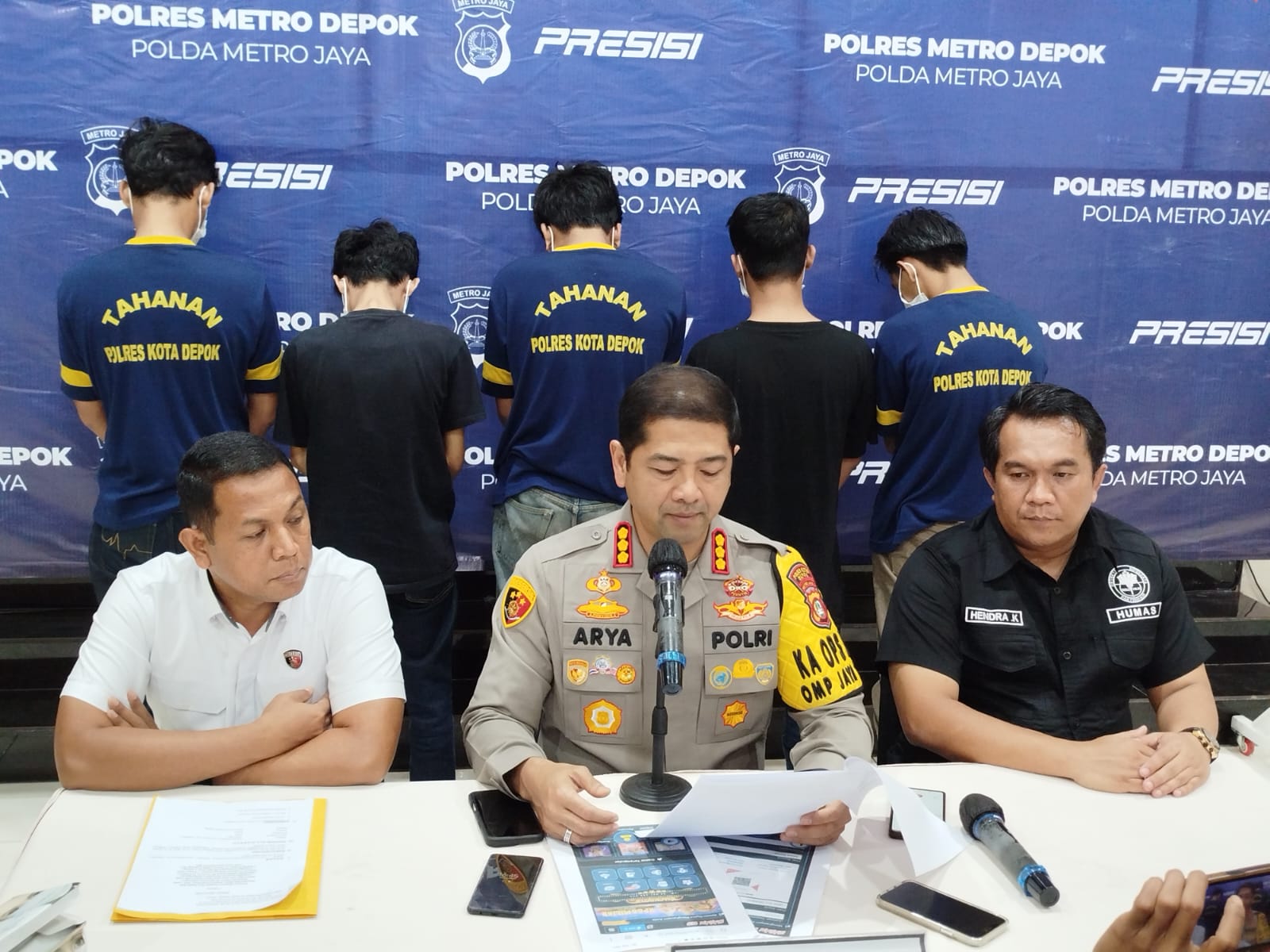 Para pelaku, yang merupakan jaringan judi online (judol), berhasil diringkus di dua lokasi berbeda di Sukmajaya, Depok. Kelima pelaku yang berhasil ditangkap adalah CP (22), TZHN (20), MK (21), R (21), dan HIR (20).