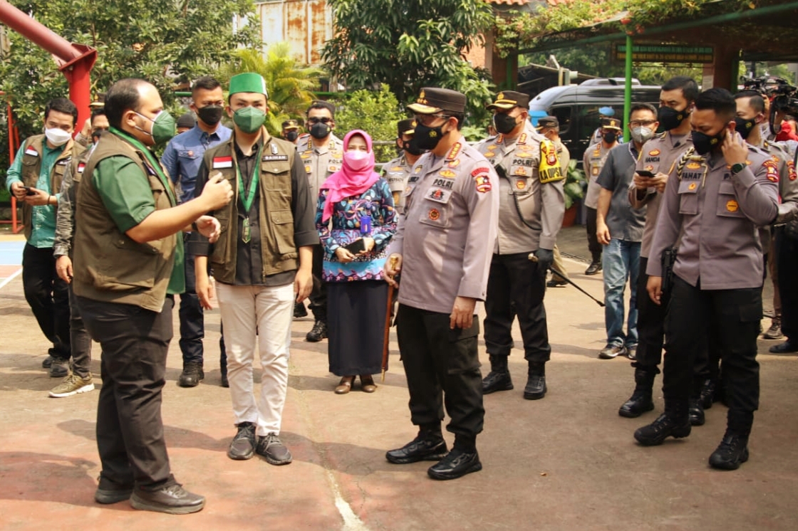 JAKARTA – JOURNALREPORTASE- Kapolri Jenderal Listyo Sigit Prabowo meninjau kegiatan kolaborasi vaksinasi massal antara Polri dengan PB Himpunan Mahasiswa Islam (HMI) di SMA Negeri 38 dan Serikat Mahasiswa Muslimin Indonesia ( SEMMI) di Universitas Indraprasta, Jakarta, Kamis (15/7/2021).