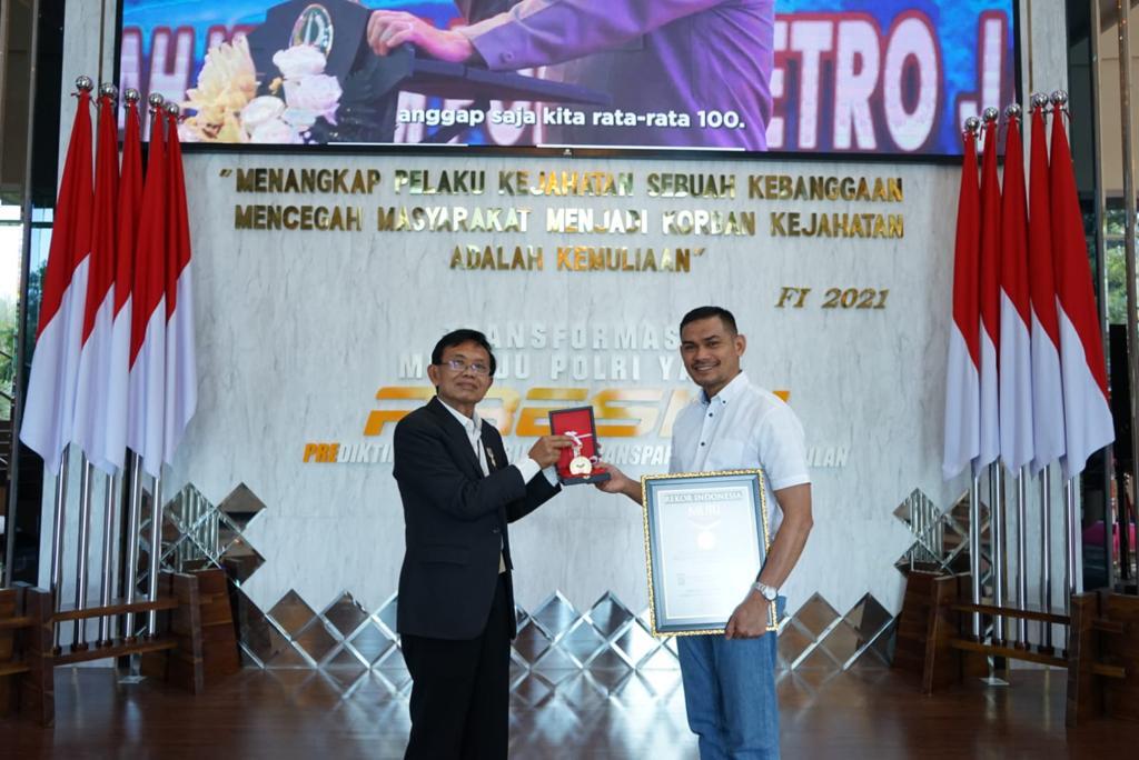 Penghargaan tersebut diberikan di Aula Gedung Promoter Polda Metro Jaya dan diserahkan langsung oleh senior manager MURI, Yusuf Ngadri kepada Kasatres Narkoba Polres Metro Jakarta Barat AKBP Akmal beserta anggota, Jumat (31/3/2023).