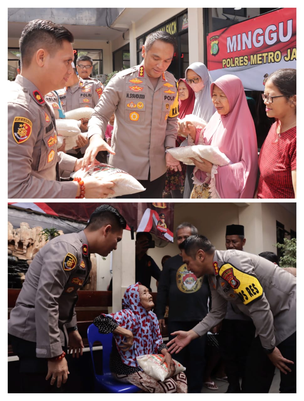 Dalam kesempatan tersebut tampak hadir kapolres Metro Jakarta Barat Kombes Pol M Syahduddi secara simbolis memberikan bantuan kepada masyarakat